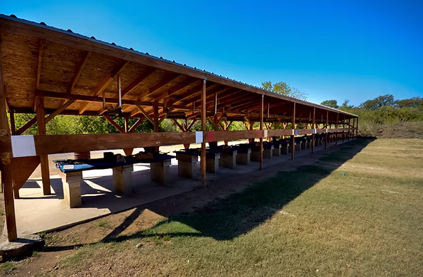 The 100 yard rifle range is undercover with 20 bench positions. There are table tops behind each position. This range is used for sighting in your rifle and for practice.